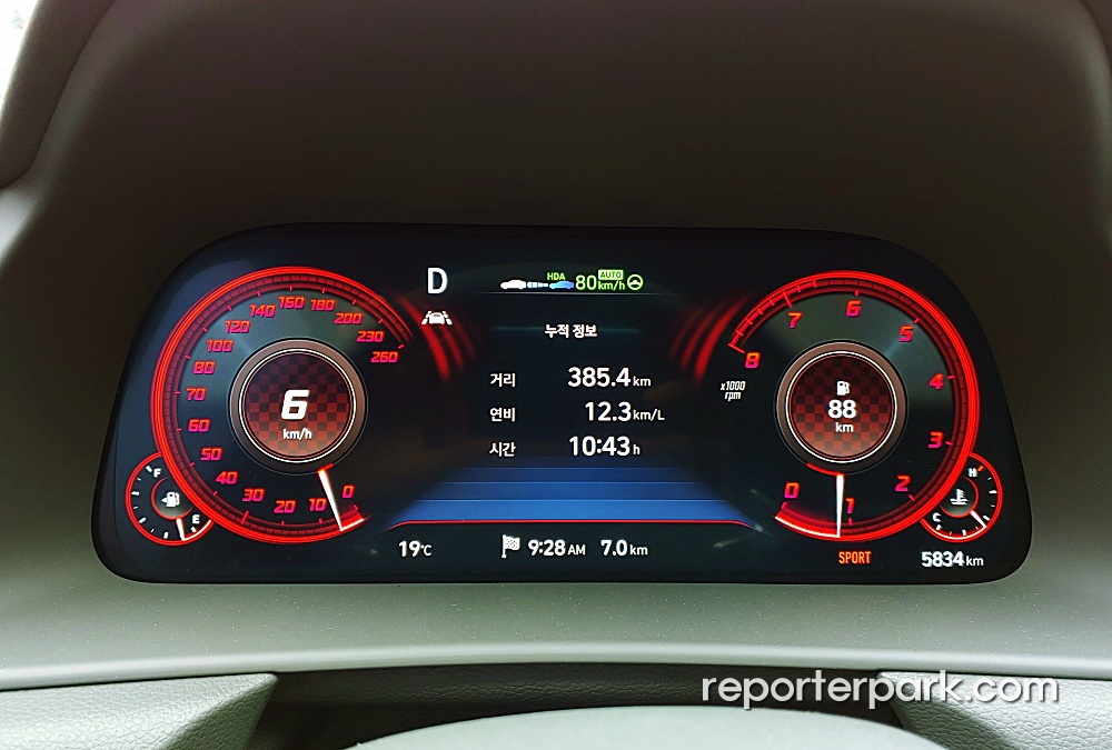 자 그렇다면 연비는 얼마나 좋을까. 시속 80km가 최고속도인 도로에서 왕복 60km구간의 출퇴근 연비는 리터당 평균 18km가 나왔다. 고속주행 비율이 80%쯤이었더라도 디젤차가 아니라 2.0리터 가솔린찬데 이정도 효율을 보이는 건 기대 이상이었다.