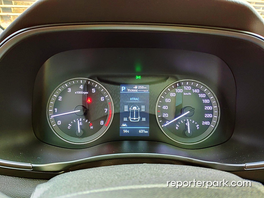 투싼엔 앞뒤 동력배분을 스스로 하는 현대차의 상시사륜구동시스템 HTRAC(에이치트랙)이 들어있다. 앞바퀴굴림방식을 기본으로 필요할 때 뒷바퀴에 절반의 힘을 나눠줄 수 있다. 계기반 가운데 디스플레이에서도 동력배분상황을 실시간으로 확인할 수 있다. 뒷바퀴 그래프가 절반인데 50%만 뒷바퀴에 전달하는 것을 의미한다.