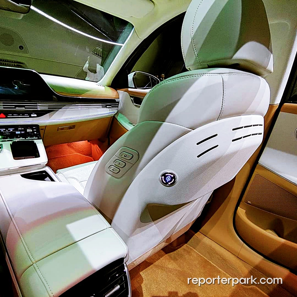 공조장치 디스플레이에서는 바람 세기나 공기청정모드를 조절할 수 있다. 그리고 실내공기의 질을 보여주는데 미세먼지 농도가 수치화돼 보이고 색깔로도 구분된다. 공기청정 버튼을 누르면 공기청정모드가 활성화되면서 차 외부공기가 차단되고 실내공기가 정화되는 모습의 그래픽도 볼 수 있다. 캘리그래피 트림에서는 조수석 뒷좌석에 빌트인 공기청정기를 옵션으로 추가할 수 있다.