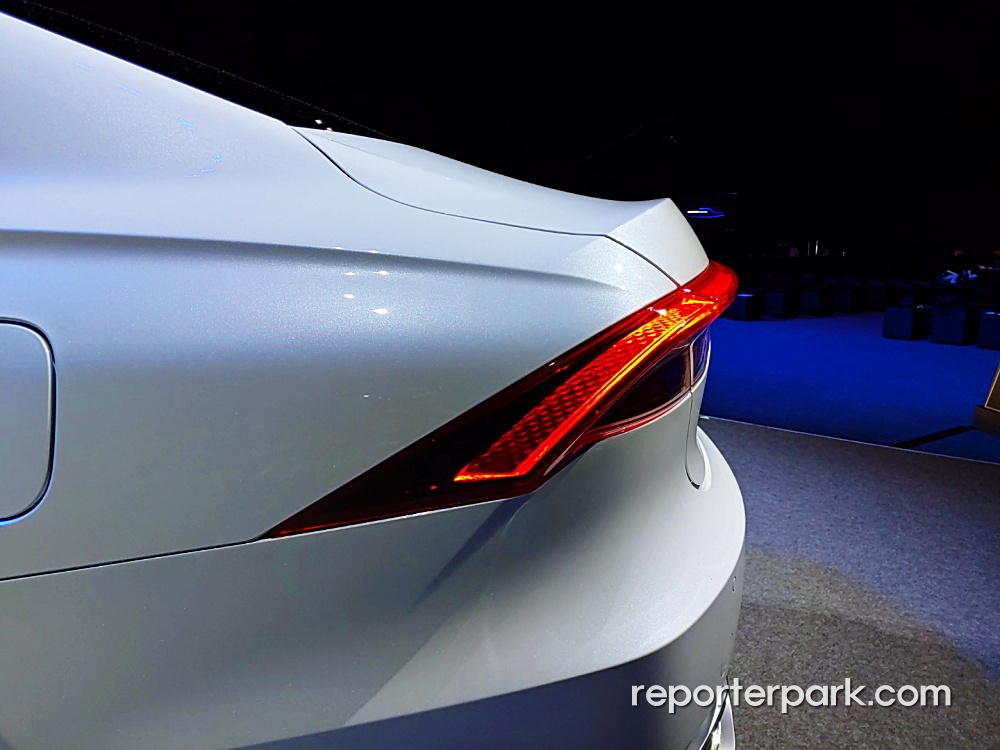 테일램프는 양쪽이 길게 이어진 형태다. 그랜저는 전통적으로 테일램프를 이어 오는 디자인을 유지했었다. XG 때 잠깐 외도(?)했다가 전통을 이어오는 중이고 그 디자인을 현대적으로 재해석해 강한 캐릭터를 만들었다. 그런데 테일램프의 사이드뷰는 구형 볼보 S60이나 S80의 것이 오버랩된다는 의견이 꽤 있다.