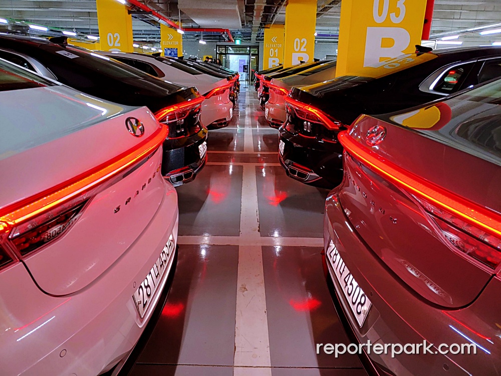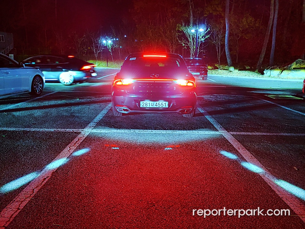 후진할 때 활용 가능한 후진 가이드 램프가 있는데 차 밖에 하얀색 가이드 선이 생긴다. 운전자가 후방 모니터를 통해 볼 때는 캄캄한 밤에도 주차공간 찾기가 쉽다. 그리고 다른 차들이 후진하는 것을 쉽게 알아차릴 수 있도록 해서 후진시 사고를 줄여줄 수 있을 것 같다.