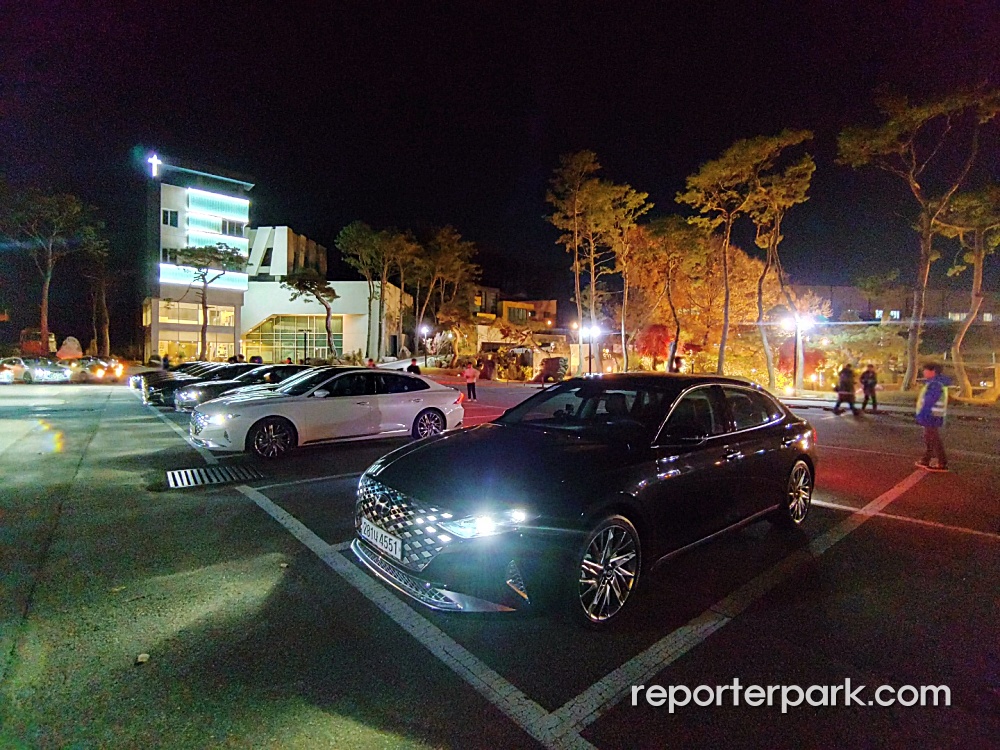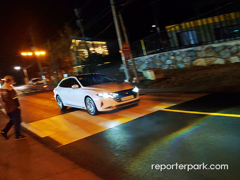 이렇게 달라진 속과 함께 그랜저의 성격을 보여주는 건 겉모양이다. 파라메트릭 쥬얼 패턴의 라디에이터 그릴, LED 헤드램프, 히든 라이팅 타입의 주간주행등이 일체형으로 적용된 전면부 디자인은 멀리서봐도 그랜저임을 알아차릴 수 있다. 사진만으로는 조금 어색했지만 실제로 보면 크기 때문인지 꽤 괜찮다.