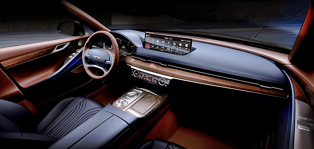 운전자의 손이 닿는 센터콘솔은 회전조작 방식의 원형 전자식 변속기(SBW, Shift-By-Wire)와 터치 및 필기방식으로 인포테인먼트 시스템을 조작할 수 있는 제네시스 통합 컨트롤러(필기인식 조작계)를 적용해 사용의 직관성을 높였습니다.