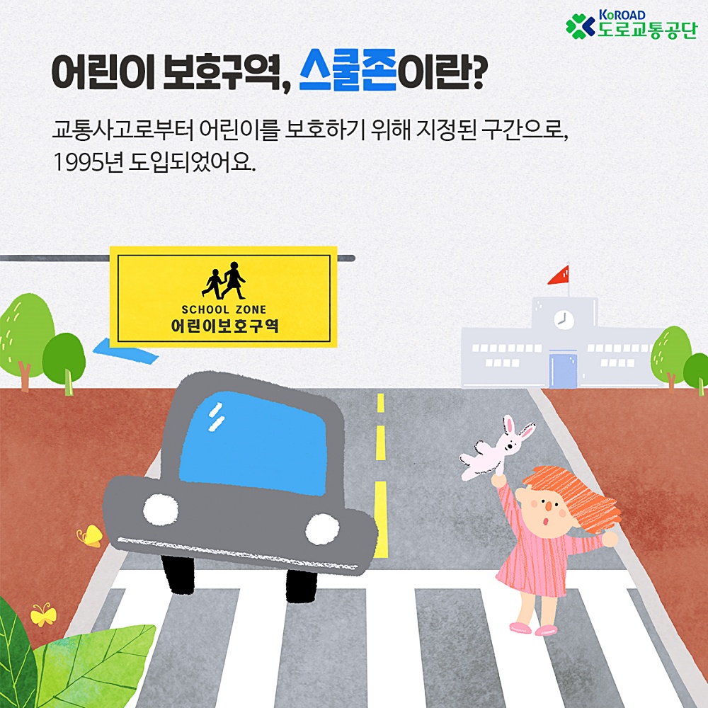 도로교통법에서는 스쿨존 제도가 실효성을 가질 수 있도록 개정하고 스쿨존 내 과속 단속카메라, 과속 방지턱, 신호등 설치를 의무화했다. 어린이 보호구역 내에서 지속적으로 교통사고가 발생하기 때문이다.