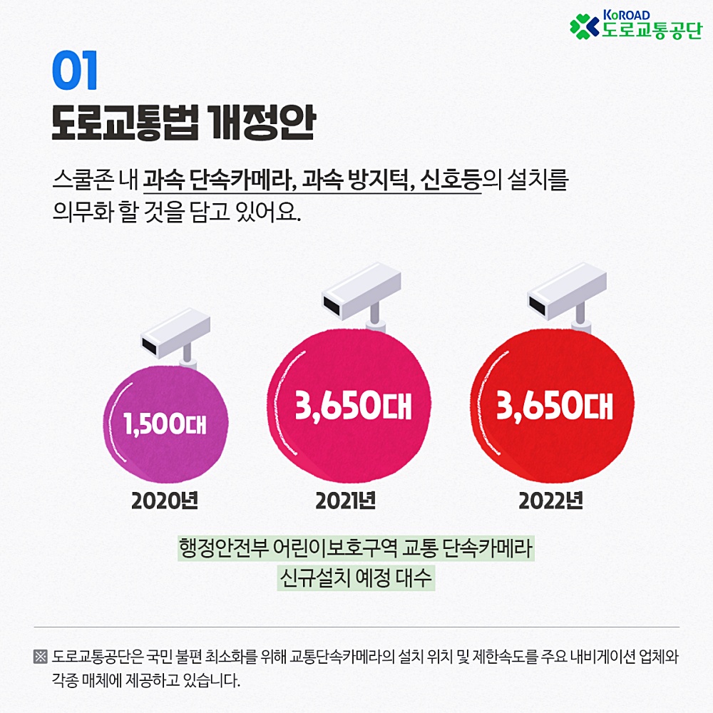 개정안에 따라 행정안전부는 어린이 보호구역 내 무인단속카메라를 2022년까지 8800대를 새로 설치할 계획이다.