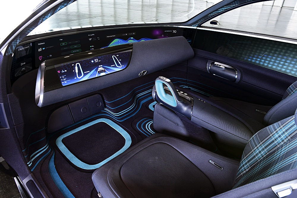 인포테인먼트시스템은 대시보드 뒤편의 양쪽필라를 잇는, 가로로 길쭉한, ‘와이드디스플레이’를 통해 구현된다. 릴렉스모드에서는 시트 각도와 대시보드 각도가 조절돼 여러 콘텐츠를 즐기는 데 최적의 자세로 바뀐다.
