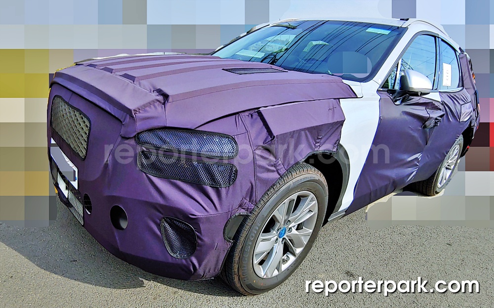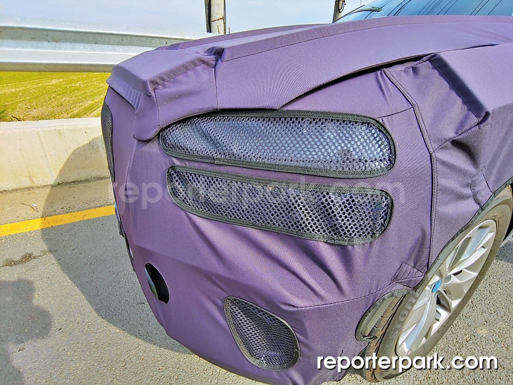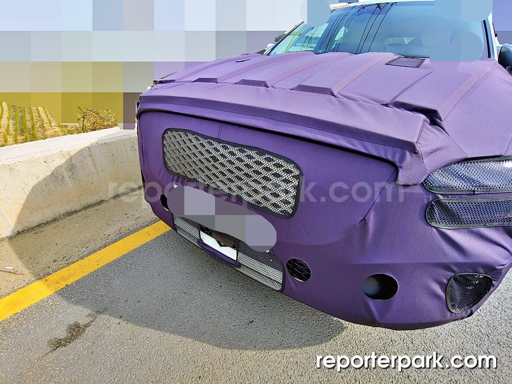 제네시스 특유의 크레스트그릴이 딱 눈에 들어오죠? 어차피 테스트카라 크롬 도금은 하지 않은 상태입니다. 대략 실루엣을 보면서 큰 윤곽을 떠올리시면 되겠습니다. 레이더 센서는 범퍼 하단 가운데 설치됩니다.